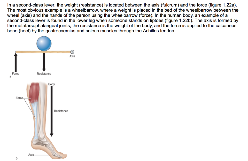 in a class two lever, the load is between the force and the fulcrum. The closer the load is to the fulcrum, the easier the load is to lift. This arrangement results in a bigger effort arm. second class lever. This type of lever is found in the ankle area. The load is located between the fulcrum and effort. When standing on tiptoe, the ball of the foot acts as the fulcrum, the weight of the body acts. In the instance of the crowbar, the. Also known as class 2 or 2nd class lever, the fulcrum is at one end of the beam, and the effort is at the other end. examples include the seesaw, crowbar and the balance scale.